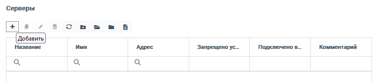 Чтобы добавить новый сервер в кластер, перейдите в раздел Серверы и нажмите на кнопку + в рабочей области: