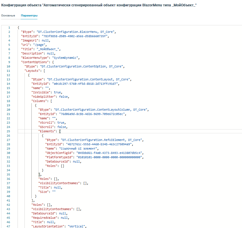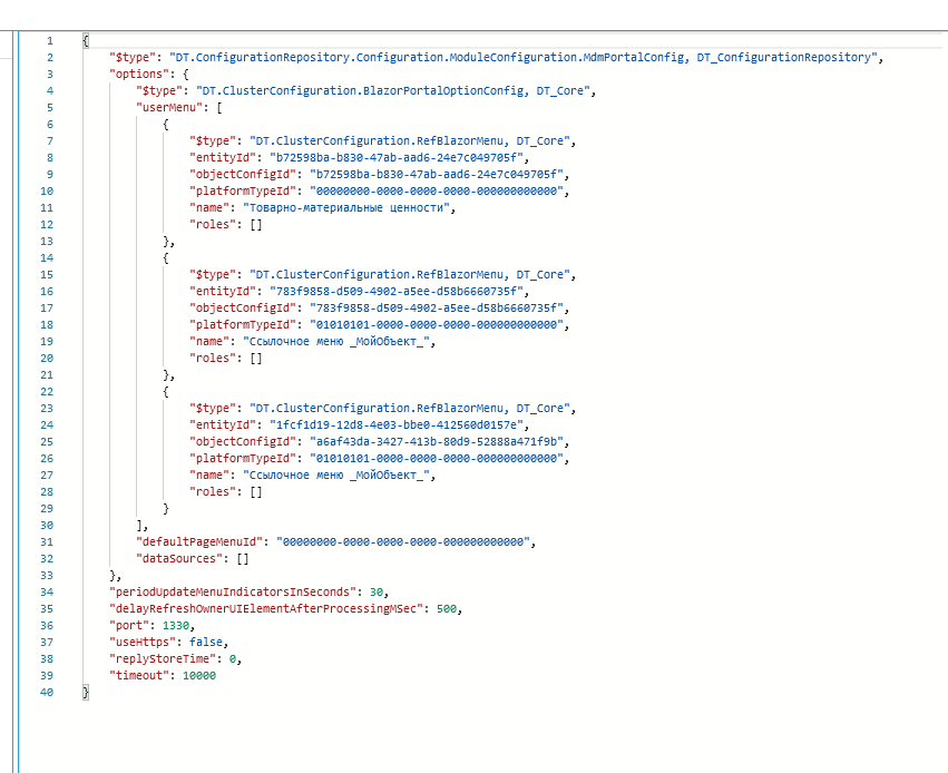 { "$type": "DT.ClusterConfiguration.RefBlazorMenu, DT_Core", "EntityId": "75211a74-b23a-42eb-b06d-2cfcb01f105d", "ObjectConfigId": "bb4d0a0e-78b6-481a-a800-f06d19e24b57", "PlatformTypeId": "138a8243-1a35-45c4-9992-7539455ca198", "Name": "Ссылочное меню Классификатор", "Roles": [] }