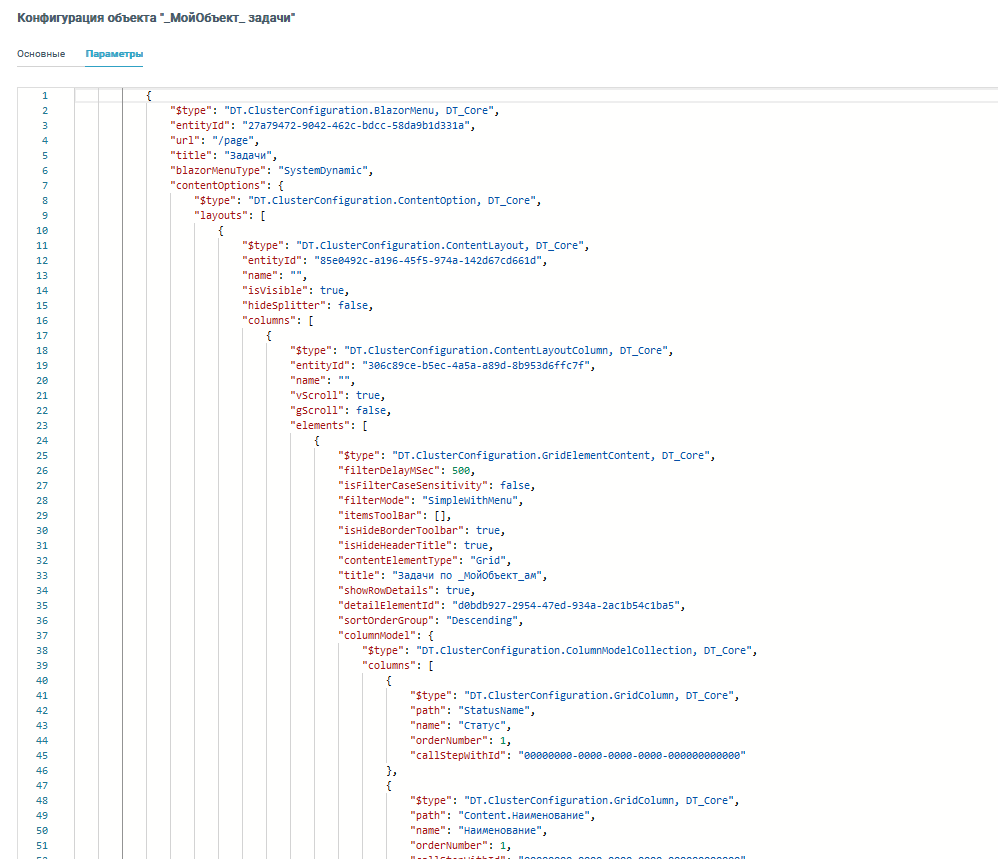 Например, объект с Guid a6af43da-3427-413b-80d9-52888a471f9b описывает раздел Задачи