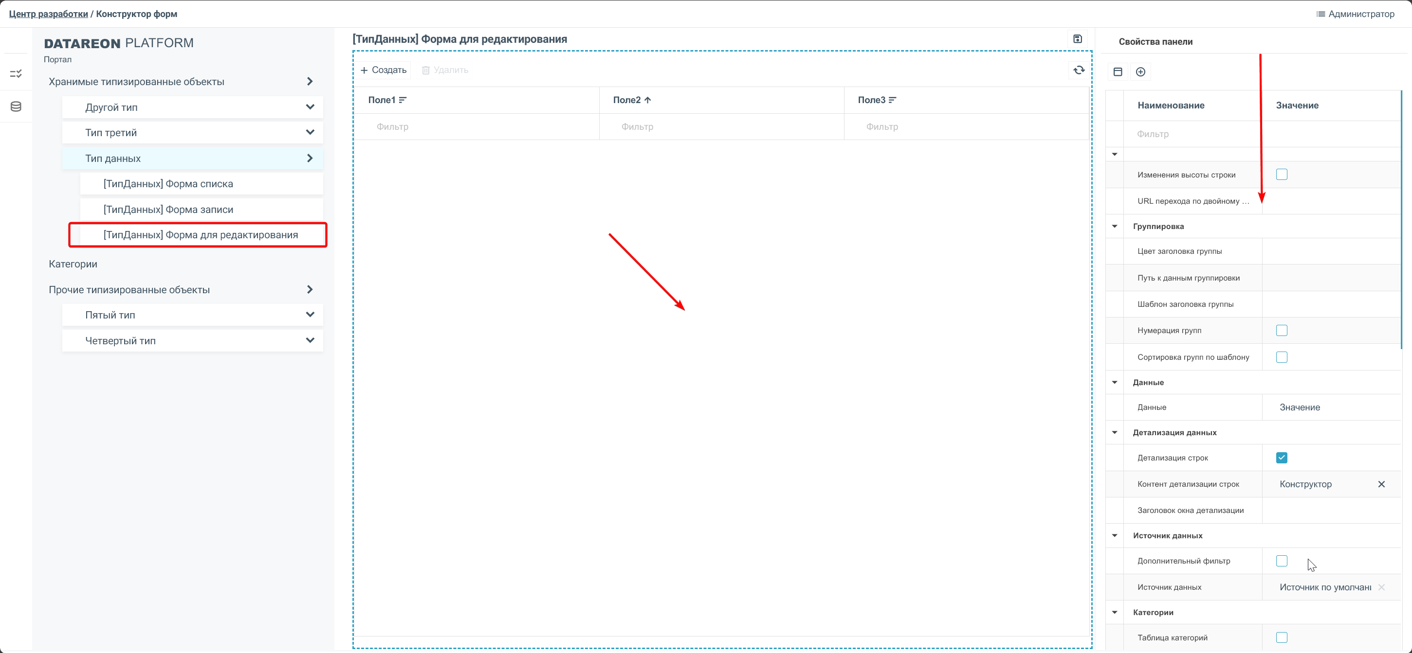 Найдите форму списка, которую необходимо отредактировать, в иерархии типов данных.