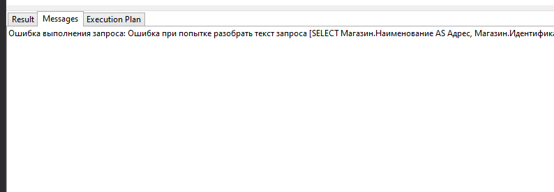 В случае возникновения ошибки в Платформе при выполнении запроса, текст ошибки можно просмотреть на вкладке Messages расширения.