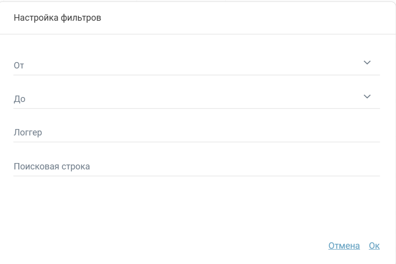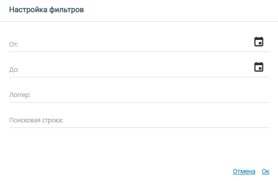 Ссылка Фильтры позволяет задать интервал выборки, логгер или определить поисковую строку: