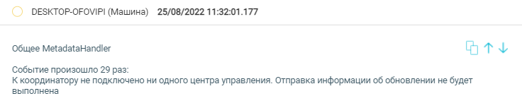 При отключении сервера в Центре настроек события сервера будут продолжать регистрироваться в Центре мониторинга и администрирования.
