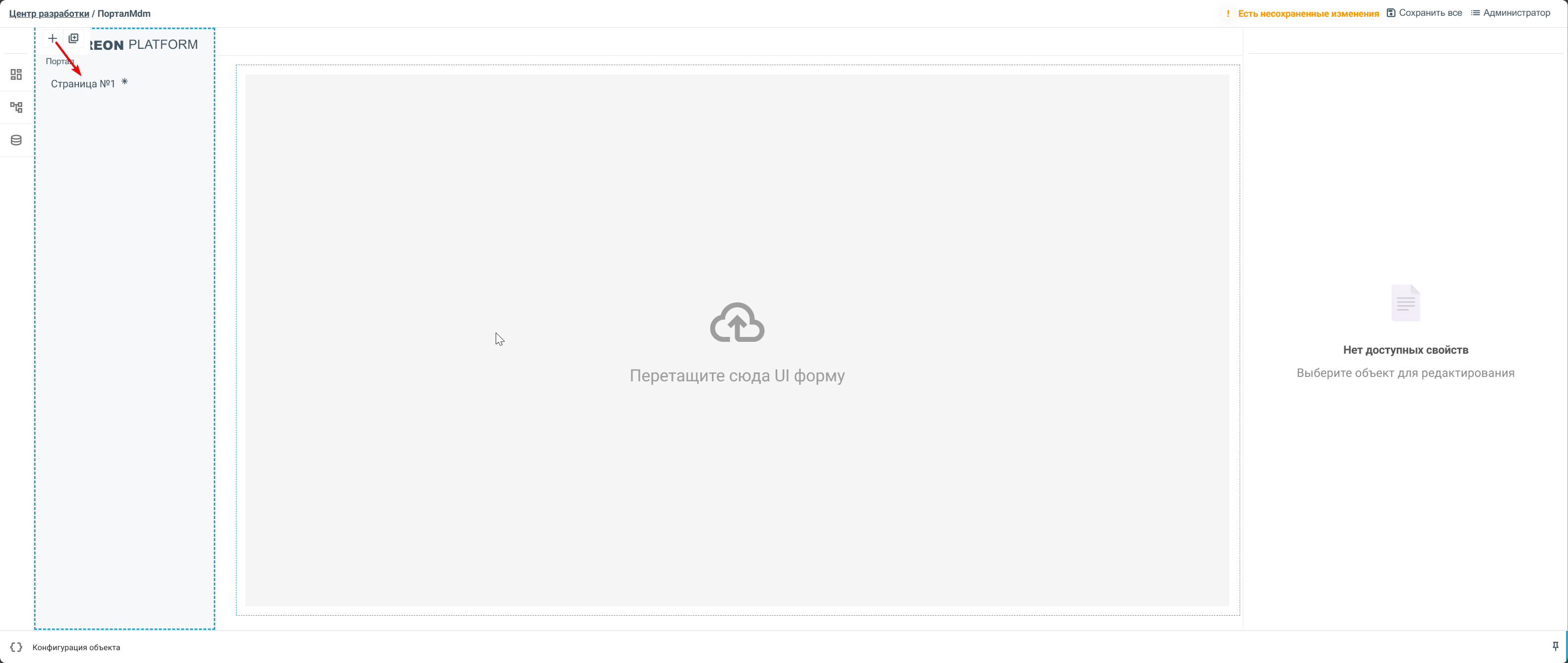 В меню навигационной панели нажмите кнопку + для создания новой страницы.