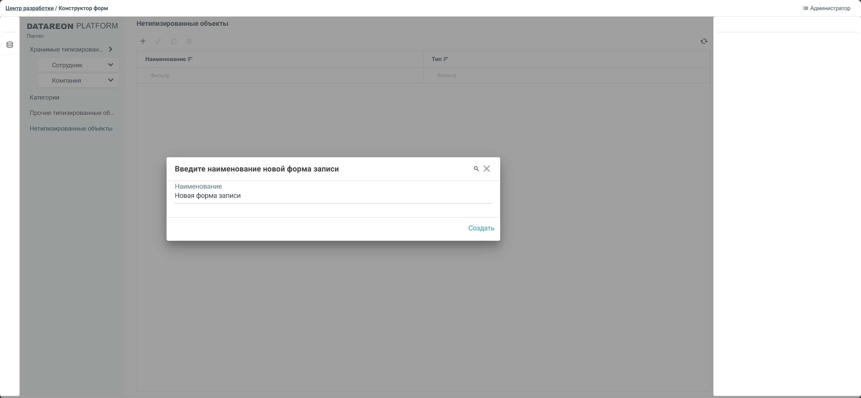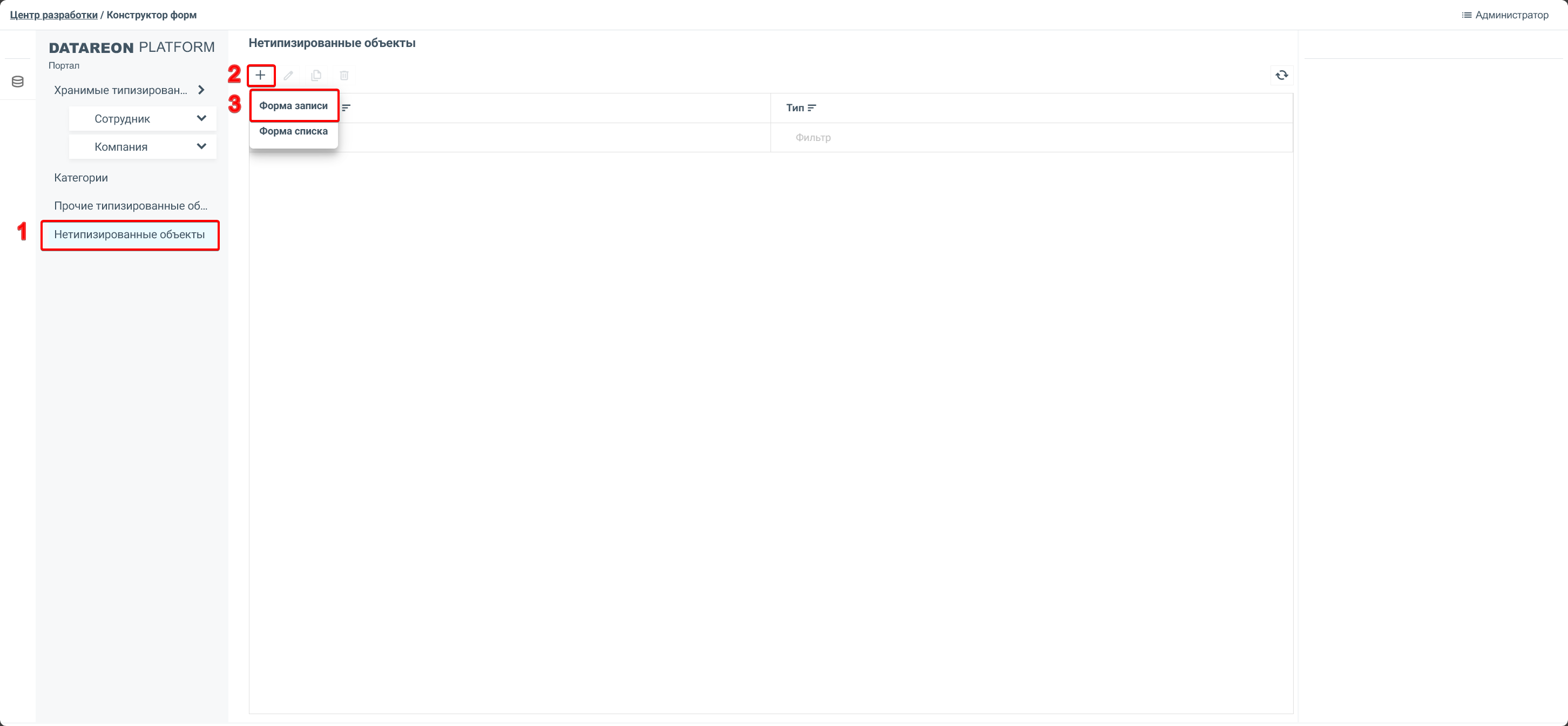 • Перейдите в конструктор форм в пункт меню «нетипизированные объекты»