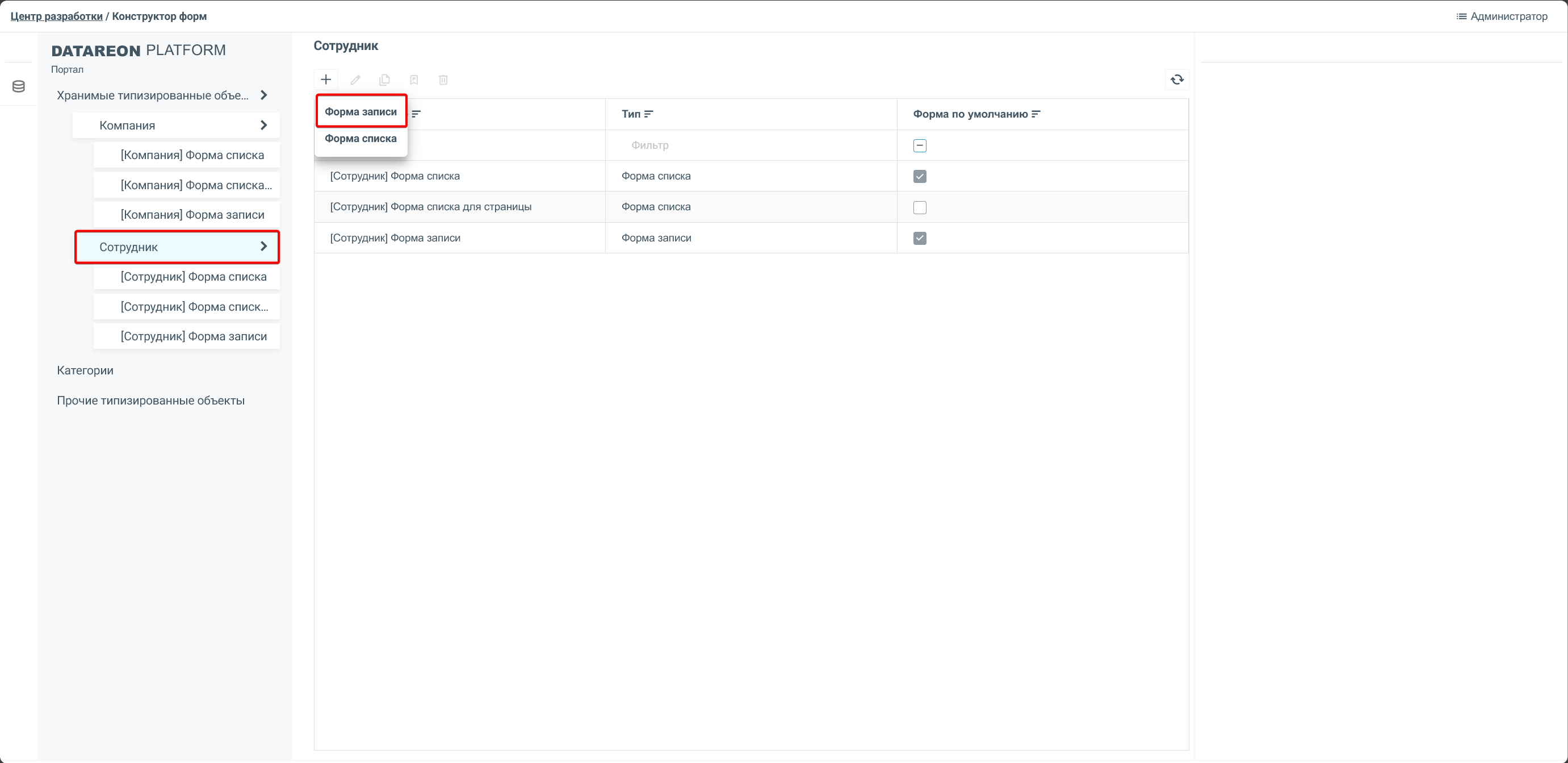 Если вам необходимо сразу сконфигурировать свойства формы записи, посмотрите пример редактирования формы на шаге 3: редактирование формы записи.