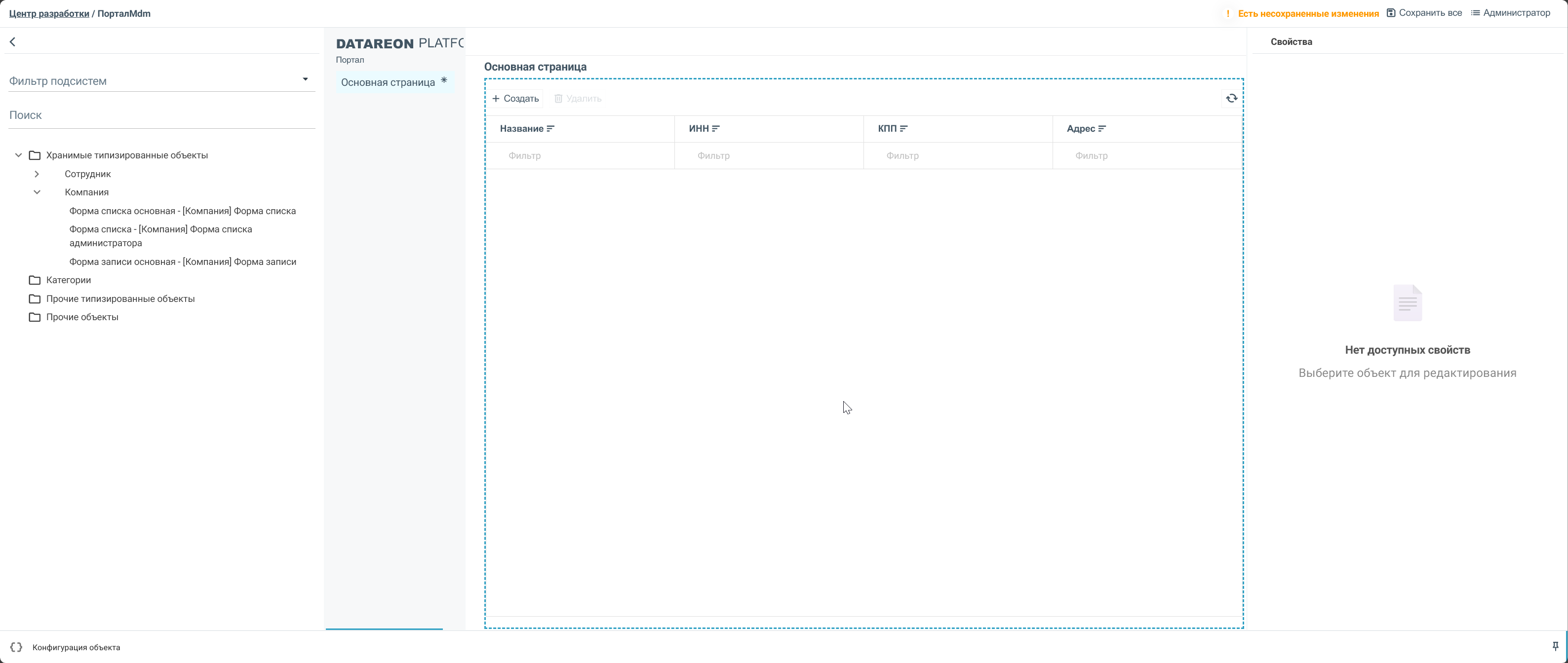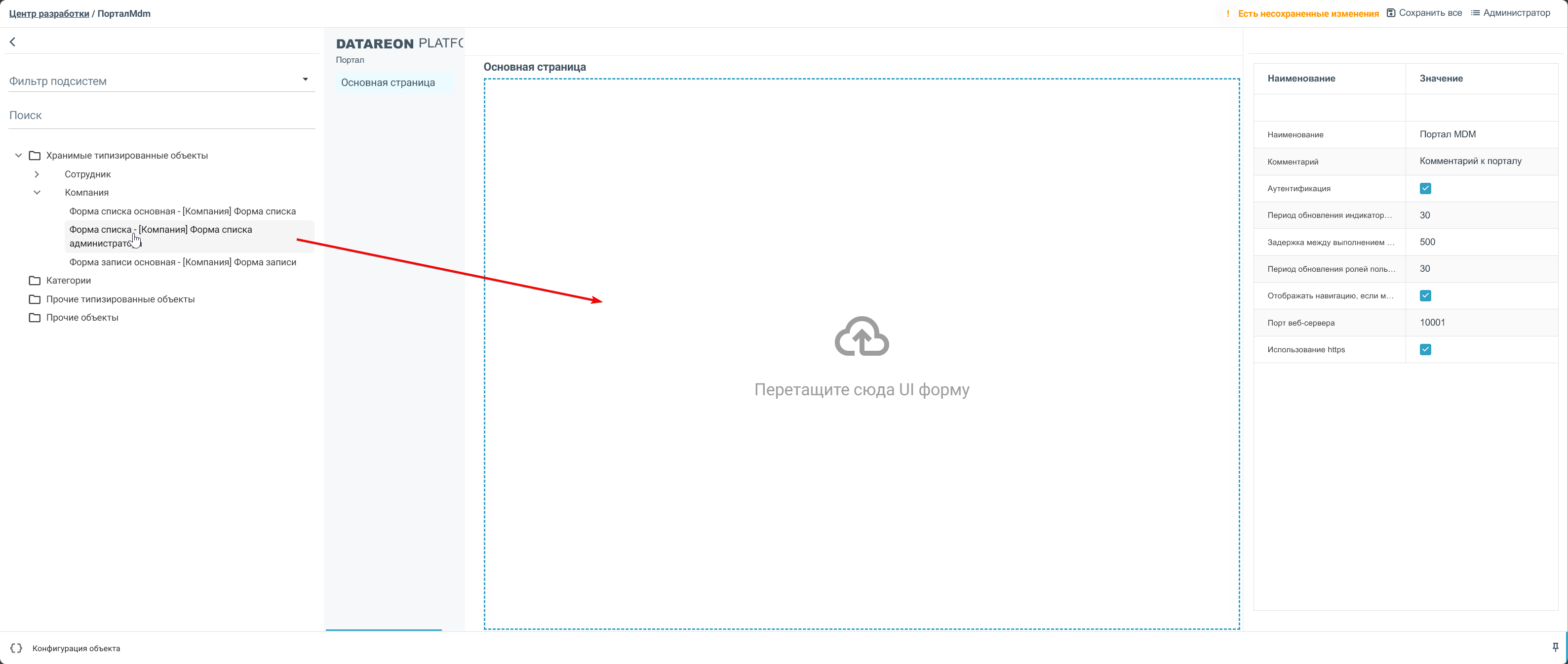Чтобы отобразить форму на странице портала, перетащите форму на страницу из панели объектов в конструкторе портала.